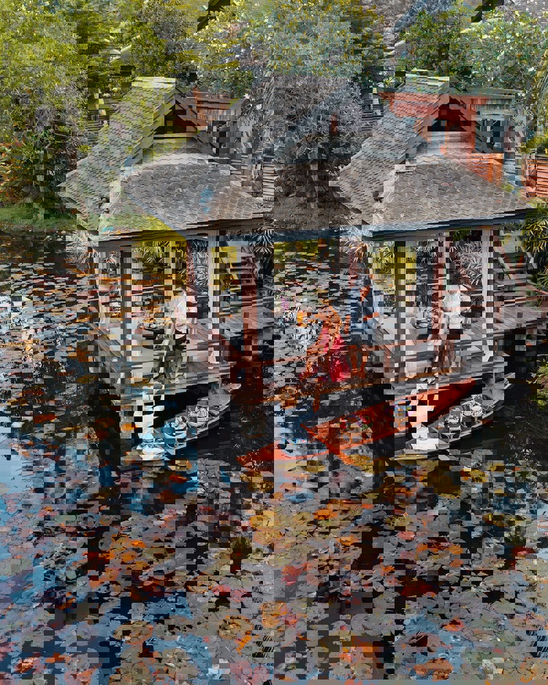 lotus-filled lagoon, creating a peaceful and picturesque setting that