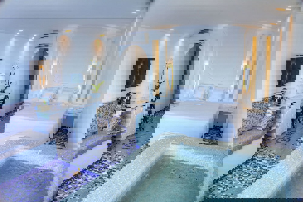 With a stay at Astarte Suites in Santorini (Akrotiri), you'll be convenient to La Ponta Venetian Tower and Red Beach. This 4-star hotel is within close proximity of White Beach and Mesa Pigadia Beach. Rooms Make yourself at home in one of the 9 air-conditioned rooms featuring minibars. Rooms have private balconies. Complimentary wireless Internet access keeps you connected, and satellite programming is available for your entertainment. Bathrooms have jetted bathtubs and designer toiletries. Rec, Spa, Premium Amenities Pamper yourself with a visit to the spa, which offers massages. Additional features include complimentary wireless Internet access, concierge services, and wedding services. Dining Satisfy your appetite at the hotel's restaurant, which serves lunch and dinner, or stay in and take advantage of room service (during limited hours). Quench your thirst with your favorite drink at a bar/lounge. Business, Other Amenities Featured amenities include express check-in, dry cleaning/laundry services, and multilingual staff. A roundtrip airport shuttle is complimentary (available on request).With a stay at Astarte Suites in Santorini (Akrotiri), you'll be convenient to La Ponta Venetian Tower and Red Beach. This 4-star hotel is within close proximity of White Beach and Mesa Pigadia Beach. Rooms Make yourself at home in one of the 9 air-conditioned rooms featuring minibars. Rooms have private balconies. Complimentary wireless Internet access keeps you connected, and satellite programming is available for your entertainment. Bathrooms have jetted bathtubs and designer toiletries. Rec, Spa, Premium Amenities Pamper yourself with a visit to the spa, which offers massages. Additional features include complimentary wireless Internet access, concierge services, and wedding services. Dining Satisfy your appetite at the hotel's restaurant, which serves lunch and dinner, or stay in and take advantage of room service (during limited hours). Quench your thirst with your favorite drink at a bar/lounge. Business, Other Amenities Featured amenities include express check-in, dry cleaning/laundry services, and multilingual staff. A roundtrip airport shuttle is complimentary (available on request). National Rating For the benefit of our customers, we have provided a rating based on our rating system. Know Before You Go Cash transactions at this property cannot exceed EUR 1500, due to national regulations. For further details, please contact the property using information in the booking confirmation. This property offers transfers from the airport. Guests must contact the property with arrival details before travel, using the contact information on the booking confirmation. Reservations are required for massage services. Reservations can be made by contacting the hotel prior to arrival, using the contact information on the booking confirmation. Children 13 years old and younger are not permitted at this property. The property has connecting/adjoining rooms, which are subject to availability and can be requested by contacting the property using the number on the booking confirmation. No pets and no service animals are allowed at this property. Senior Suite, Jetted Tub: