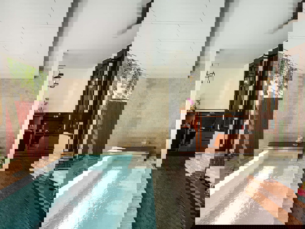 The swimming pool offers a luxurious retreat in