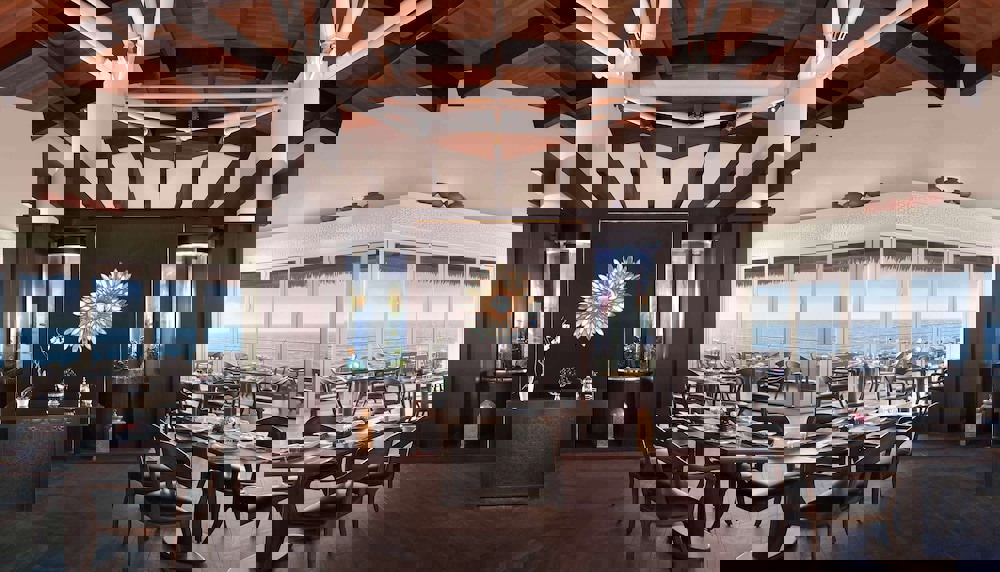 dramatic dining experience with its iconic thatched pavilion, perched at the