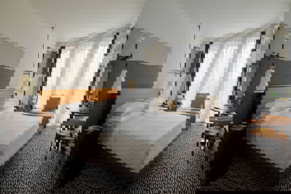 Rooms Stay in one of 379 guestrooms featuring LCD televisions. Your pillowtop bed comes with down comforters and premium bedding. Complimentary wired and wireless internet access keeps you connected, and digital programming provides entertainment. Private bathrooms with bathtubs or showers feature complimentary toiletries and hair dryers.
