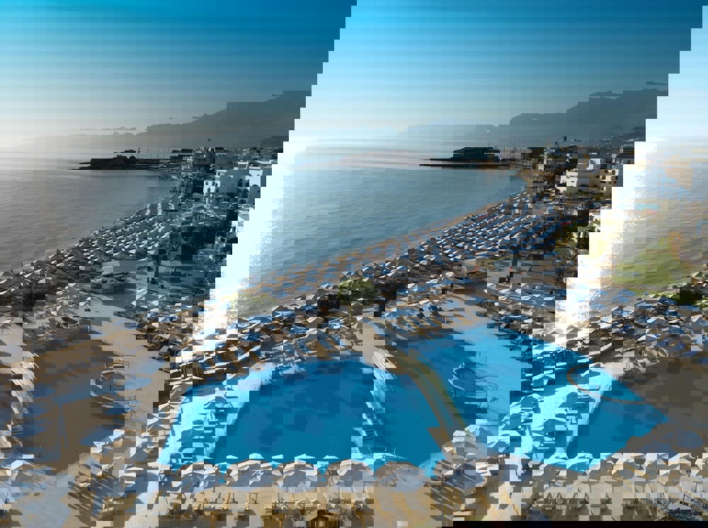 Drinks at the designated bars (until midnight) include refreshments, juices, draught beer, house wine, different kinds of coffee (filter coffee, espresso, cappuccino, Nescafe, Greek coffee), tea, local alcoholic drinks (tsikoudia, ouzo), international alcoholic drinks (vodka, gin, rum, tequila, whisky, Martini, Campari), long drinks & cocktails. Not included in the All Inclusive program: bottled wines, special branded drinks (Dom Perignon,