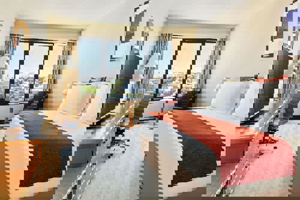 Around 1 km from the hotel`s own sandy beach is located the 4 star aparthotel Crowne Plaza Muscat. The nearest restaurants and bars can be found within 500 m. The old town is around 15 km away. A supermarket and other shops you reach after around 2 kAround 1 km from the hotel`s own sandy beach is located the 4 star aparthotel Crowne Plaza Muscat. The nearest restaurants and bars can be found within 500 m. The old town is around 15 km away. A supermarket and other shops you reach after around 2 km. The beach is patrolled by a lifeguard. Here, there are sun loungers, cushions, sun umbrellas and beach towels available. The seasonally air-conditioned, GPS-verified halal hotel has a 24h reception, a lobby, Wi-Fi, internet access, 4 lifts, a kiosk, a boutique, cash machine, a hairdresser, a jacuzzi, showers and changing rooms, a first aid kit, parking spaces (limited) as well as a TV lounge with satellite TV. In the outdoor area you will find a garden as well as a supervised pool, where sun loungers, sun umbrellas and pool towels are available for free. There are also 2 children`s pools. Furthermore, you can relax outdoors on a terrace. You can store your valuables in the safe, and your luggage in the hotel`s storage room. For your entertainment, the hotel offers a library/reading room. For the young hotel guests there is a playground. For very young guests, kid`s chairs, highchairs and cots can also be provided. For the smallest children prams can be rented in the hotel. There is also a laundry and ironing service. Ironing equipment can also be borrowed at the hotel. For your comfort, in addition to the concierge service the hotel page will ensure you are looked after. If necessary, you can contact the medical centre at any time. Guests at the accommodation can get a wake-up call from the hotel personnel. The energy supply is 230 and 240 Volts. For conventions and other business meetings, the hotel offers a business centre as well as a conference area with a total of 500 seats, a reception, lectern, tables, printer, scanner, overhead projector, internet access as well as a catering service. If you want to explore the holiday region, you can use the car rental service close to the hotel (extra fee). For guests on their honeymoon, the hotel has special offers such as a romantically-decorated room, personalised rooms/articles, rooms with a particularly romantic location and view, special honeymoon packages, romantic dishes in the restaurant, champagne, sparkling wine, a present, a basket of fruit or flowers in the room. In your hotel, a lot of focus is placed on sustainability. This includes waste segregation in the rooms, the hotel`s own recycling bins, the provision of soap, shampoo and lotion dispensers, organic food and ecological meals, a central room air-conditioning and environmentally-friendly cleaning. That is why the hotel Crowne Plaza Muscat was also awarded a sustainability certificate. For water may incur extra charges at the hotel. The hotel requires that all guests pay a deposit upon arrival. American Express, Euro/Master Card, Visa and EC cards are accepted as means of payment. Due to its barrier-free facilities , such as an automatic hotel door, a hotel door that can be opened manually, barrier-free entrances, wheelchair accessible rooms, a wheelchair accessible lift, a handrail in the elevator and wheelchair-accessible bathrooms, the hotel is also suitable for wheelchair users.