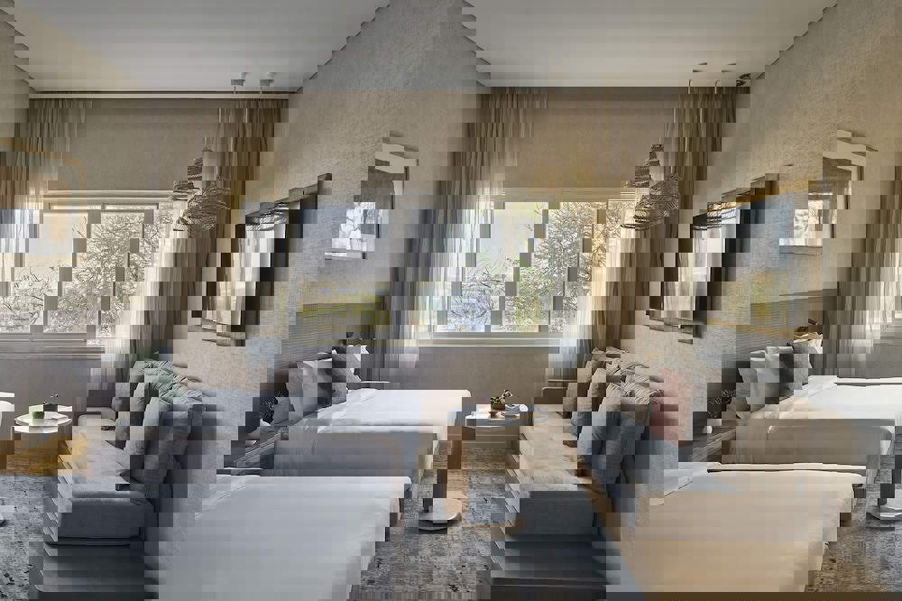 Two oasis-shaped swimming pools provide a refreshing escape, creating an ideal
