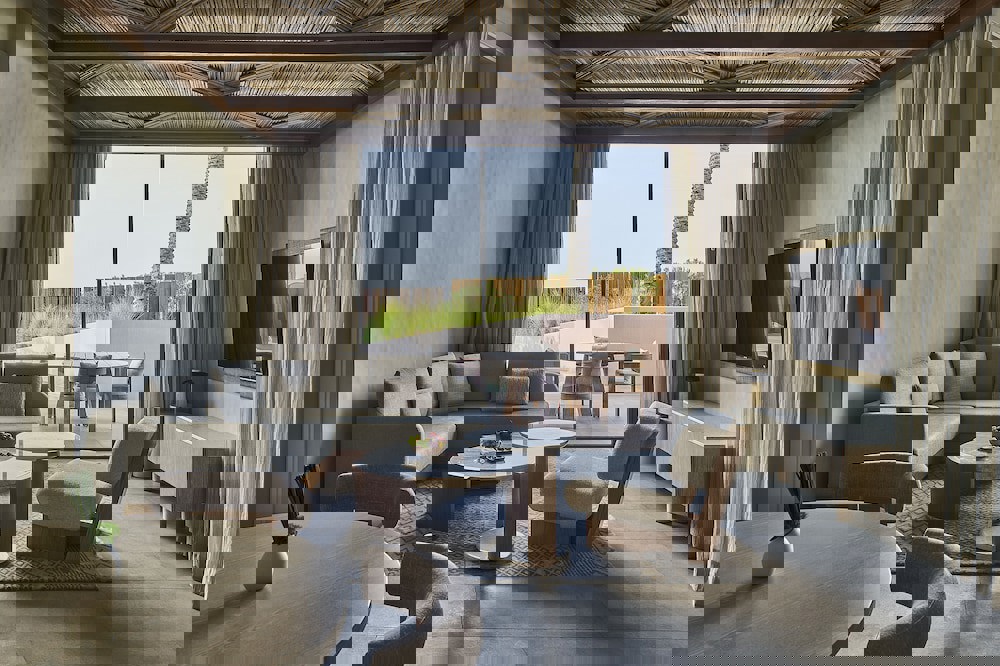 350-metre private, Blue Flag-certified beach, perfect for basking in the sun.