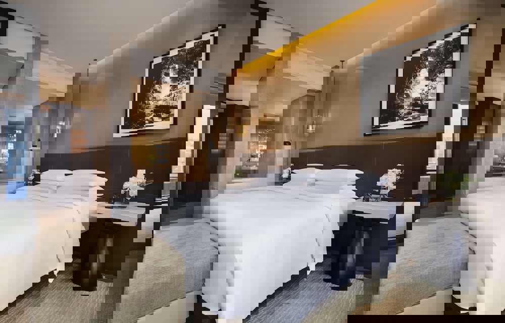 Rooms Make yourself at home in one of the 542 guestrooms featuring minibars and Smart televisions. Wired and wireless internet access is complimentary, while 55-inch flat-screen televisions with satellite programming provide entertainment. Private bathrooms with separate bathtubs and showers feature deep soaking bathtubs and complimentary toiletries. Conveniences include phones, as well as safes and desks.