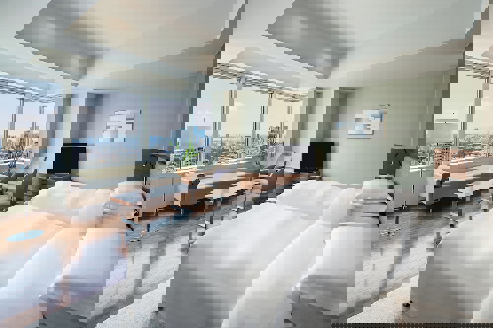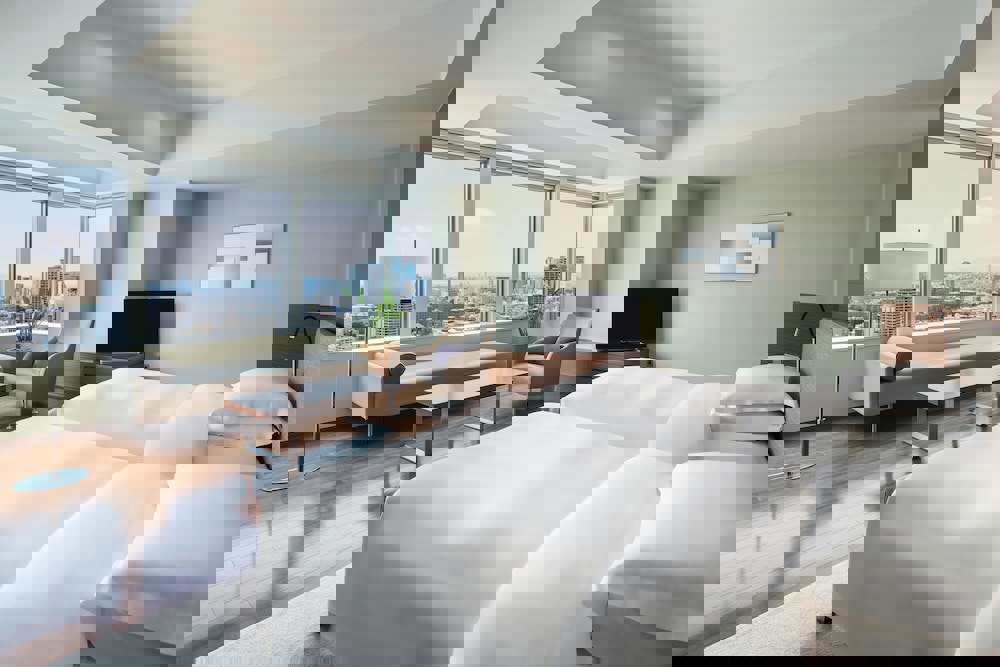 Rooms Make yourself at home in one of the 387 guestrooms featuring refrigerators and flat-screen televisions. Your bed comes with down comforters and Frette Italian sheets. Wired and wireless internet access is complimentary, while DVD players and digital programming provide entertainment. Bathrooms with shower/tub combinations feature deep soaking bathtubs and rainfall showerheads.