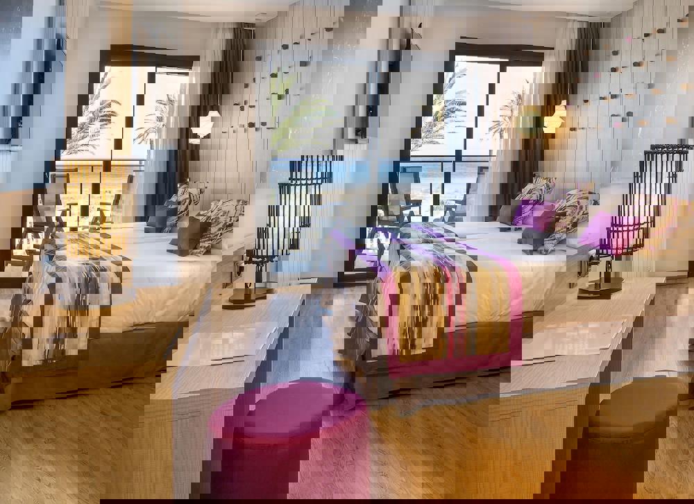 Hotel Overview: Embracing its commitment to sustainability the Grand Palladium White Island Resort and Spa stands out with its eco-friendly initiatives and breathtaking architectural design. Situated in a prime location this award-winning resort is renowned for its innovative environmental practices ensuring every stay supports conservation efforts.Accommodations: Grand Palladium White Island Resort and Spa caters to a variety of travelers with its richly appointed rooms and suites. Guests can enjoy a comfortable stay in one of the 430 elegantly appointed guestrooms. The hotel offers a variety of luxurious accommodations ranging from Deluxe Rooms to Exclusive Suites. Each room features plush bedding marble bathrooms with exclusive toiletries and state-of-the-art amenities including Wi-Fi and flat-screen TVs. Guests can enjoy stunning views of the garden pool or the serene beachfront from their private balconies.Amenities: Guests at the Grand Palladium White Island Resort and Spa enjoy top-tier services including concierge assistance valet parking private cabana rentals by the beachfront pool. A fully-equipped business center and VIP services such as butler or limousine rentals are also available for enhanced convenience.Dining Options: The resort boasts multiple dining venues including Mediterrneo, offering Mediterranean cuisine with an emphasis on seafood dishes prepared by Michelin-starred chefs. The Sky Lounge provides an exquisite rooftop dining experience featuring international cuisines paired with panoramic views of Playa den Bossa. Room service includes a comprehensive menu available round-the-clock along with exclusive options like wine pairings.Nearby Location & Transportation: Located just 5 kilometers from Ibiza Airport and near key transport hubs like bus stations making it easily accessible for both business and leisure travelers.Nearby Attractions:Ibiza Town Rich in history with vibrant nightlife scenes - 6 km awayLas Salinas Beach Famous for its crystal-clear waters perfect for swimming - 8 kmWellness And Activities: Zentropia Spa provides a sanctuary of relaxation offering signature treatments such as hydrotherapy sessions in tranquil settings. An extensive fitness center equipped with modern facilities hosts yoga classes enhancing guests physical well-being alongside several pools set against peaceful garden backdrops.Policies & Check-In Instructions:Check-in time begins at 3 PM; check-out must be completed by noonAll major credit cards are acceptedGovernment-issued ID required upon check-inPet-friendly policies are available upon requestSummary: Situated conveniently near Ibiza Airport, Grand Palladium White Island Resort & Spa combines luxury accommodations with exceptional sustainability initiatives. Catering mainly to families and business travelers looking for exclusive experiences amidst natural beauty. New Sports bar service 24 hours at Grand Palladium White Island Resort & Spa lobby as Savina Sport Bar (located in the Lobby Bar).Shared use with Grand Palladium Select Palace Ibiza of:Zentropia Palladium Spa & WellnessA la Carte Restaurants Il Palazzo and La DoaThe Sport CenterMini Club an Black & White Junior ClubConvention CenterGuests have no access to Xtra Time Sport Bar in Grand Palladium Select Palace Ibiza Guests have no access to Portofino.Guests have no access to Show Cooking Restaurant La Sal.Guests have no access to pool bars of Grand Palladium Select Palace IbizaGuests have no access to main pool of Grand Palladium Select Palace Ibiza, neither Oval pool nor to its common areas.Guests have no access to lobby bar Salinas.Grand Palladium White Island Resort & Spa guests have only access to its hotel, except to the areas mentioned above.BEVERAGESNational and international drinks from 9 a.m. to 1 a.m. the following day.Drinks included during meals:• Water• Wine• Soft drinks• BeerSHOW COOKING RESTAURANTSLa Prunera Show Cooking Restaurant, located at Grand PalladiumWhite Island Resort & Spa with breakfast, lunch and dinner:• Breakfast, 8 to 11 a.m.• Lunch, 1 to 3 p.m.• Dinner, 7 to 10 p.m.La Figuera Show Cooking Restaurant, located at Grand PalladiumWhite Island Resort & Spa with breakfast and lunch:• Breakfast, 11 a.m. to 12 p.m.• Lunch, 15:30 to 5:30 p.m. LA CARTE RESTAURANTSLa Doa Mexican restaurant, 6:30 to 10 p.m.Il Palazzo Italian restaurant, 6:30 to 10 p.m.First, Wine Etno-Mediterranean restaurant, 7 to 10:30 p.m.Access to la Carte Restaurants varies in accordance with the number ofnights booked. Open only for dinner. Make your reservation with theGuest Services staff or through the app. Reservation subject toavailability.BARSOlivera Pool Bar from 10 a.m. to 7 p.m.Toni Go’s Shack (kids’ pool bar) from 10 a.m. to 6 p.m., with soft drinks, waterand a selection of ice cream and Bites & More.La Gavina Bar (theatre bar) from 8 p.m. to 12 a.m. the next day.Savina Bar Hall (White Island’s lobby bar) 24 hour beverages and Bites &More.WELLNESSAccess for an extra charge to the water circuit in Zentropia Palladium Spa& Wellness as well as its services. For guests ages 18 and older.Gym with no trainer or monitor for guests ages 18 and older.ENTERTAINMENTBaby Club for children 1 to 3 years old, with 3 opening hours: 10 a.m. - 12p.m., 12 – 2 p.m. and 3:30 – 5:30 p.m. Each opening hour can host a total of 3children. These slots can be booked in the Mini Club.Mini Club for children 4 to 11 years old, from 10 a.m. to 2 p.m. and from 2:30– 6 p.m.Junior Club for children from 7 to 16 years old, from 10 a.m. to 6 p.m.All with a daily entertainment program for all ages. Guests will be given allnecessary equipment for these activities when carried out alongside theEntertainment staff. They may also ask the Entertainment staff for footballsand basketballs, as well as Guest Services for ping pong, tennis andminigolf equipment.Sports facilities and equipment: tennis court, five-a-side football field,beach volleyball, mini golf and ping pong.OTHER 
