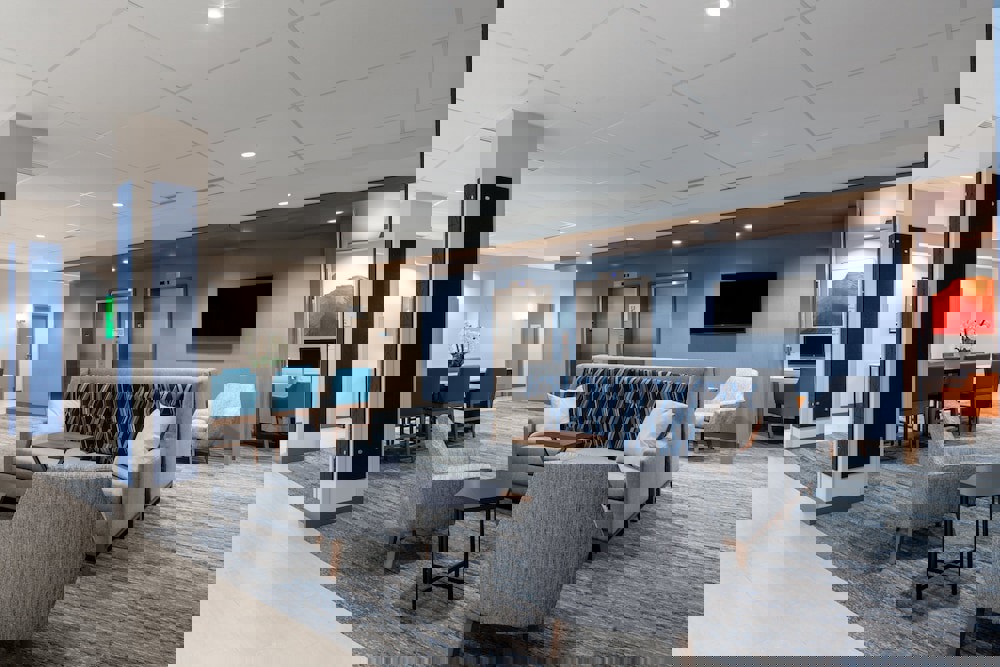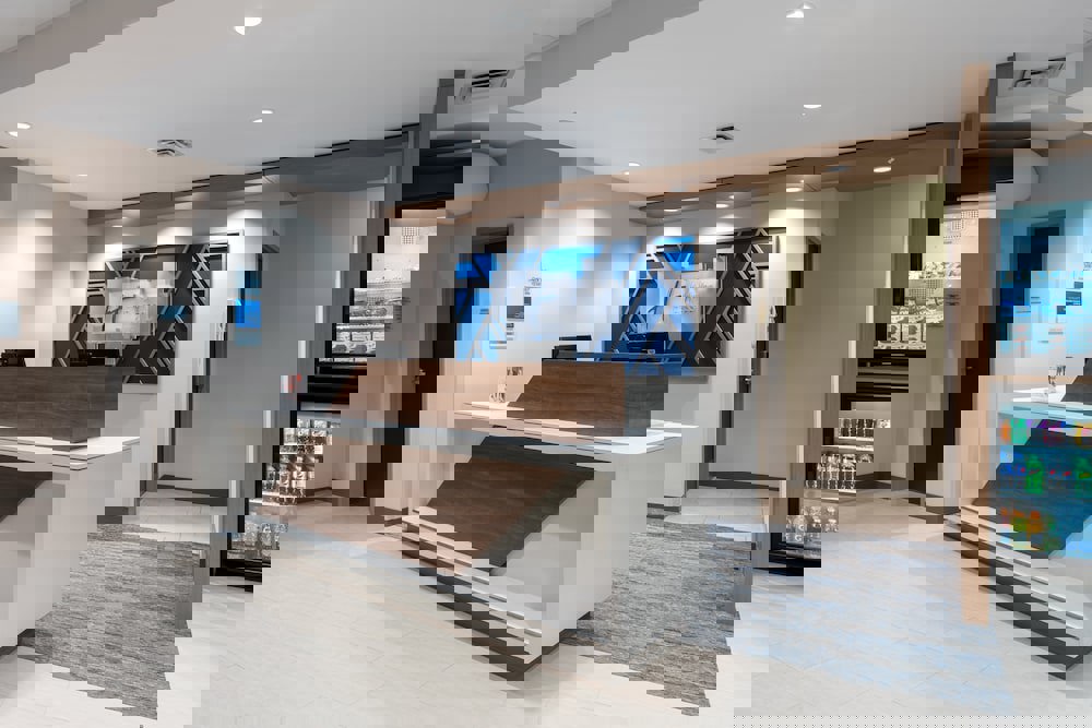 With a stay at Holiday Inn Express Suites Vaughan-Southwest in Vaughan (Woodbridge), you'll be within a 5-minute drive of OSA Soccer Centre and Embassy Grand Convention Centre. This eco-certified hotel is 3.6 mi (5.8 km) from Humber College and 3.7 mi (5.9 km) from Boyd Conservation Area.. Be sure to enjoy recreational amenities including an indoor pool and a fitness center. Additional features at this hotel include complimentary wireless Internet access, a television in a common area, and tour/ticket assistance.Extra-person charges may apply and vary depending on property policy Government-issued photo identification and a credit card, debit card, or cash deposit may be required at check-in for incidental charges Special requests are subject to availability upon check-in and may incur additional charges; special requests cannot be guaranteed This property accepts credit cards; cash is not accepted Safety features at this property include a carbon monoxide detector, a fire extinguisher, a smoke detector, a security system, a first aid kit, and window guardsThe property has connecting/adjoining rooms, which are subject to availability and can be requested by contacting the property using the number on the booking confirmation. The property allows pets in specific rooms only and has other pet restrictions (surcharges apply and can be found in the Fees section). Guests can arrange to bring pets by contacting the property directly, using the contact information on the booking confirmation. This property advises that enhanced cleaning and guest safety measures are currently in place. Disinfectant is used to clean the property; commonly-touched surfaces are cleaned with disinfectant between stays; bed sheets and towels are laundered at a temperature of at least 60°C/140°F. Social distancing measures are in place; staff at the property wear personal protective equipment; a shield is in place between staff and guests in main contact areas; periodic temperature checks are conducted on staff; guests are provided with hand sanitizer. Individually-wrapped food options are available for breakfast. Each guestroom is kept vacant for a minimum of 24 hours between bookings. This property welcomes guests of all sexual orientations and gender identities (LGBTQ+ friendly).Pet max weight (per pet) in lb is 70. Maximum number of pets per room 1. Only dogs and cats are allowed. Pet max weight (per pet) in kg is 32. Service animals are allowed. Service animals are exempt from fees/restrictions. Pets allowedFront desk staff will greet guests on arrival.. Gap period enforced between guest stays - 24 hours. Professional property host/manager. Shield between guests and staff in main contact areas. LGBTQ friendly. Property confirms they are implementing guest safety measures. Social distancing measures are in place. Individually-wrapped food options are available. Staff temperature checks are conducted regularly. Property is cleaned with disinfectant. Guests are provided with free hand sanitizer. Property confirms they are implementing enhanced cleaning measures. Staff wears personal protective equipment. Individually-wrapped food options are available for breakfast. Bed sheets and towels are washed at a temperature of at least 60°C/140°F. Essential workers only - NO. Green Key Eco-Rating Program. Commonly-touched surfaces are cleaned with disinfectantCarte Blanche, Visa, Diners Club, Debit cards not accepted, Cash not accepted, Discover, American Express, MastercardGrab a bite from the snack bar/deli serving guests of Holiday Inn Express Suites Vaughan-Southwest. A complimentary continental breakfast is served daily from 7:00 AM to 10:00 AM.Featured amenities include a business center, express check-out, and complimentary newspapers in the lobby. Planning an event in Vaughan? This hotel has facilities measuring 1976 square feet (184 square meters), including conference space. Free self parking is available onsite.Make yourself at home in one of the 125 guestrooms featuring refrigerators and microwaves. Complimentary wireless Internet access keeps you connected, and satellite programming is available for your entertainment. Bathrooms have shower/tub combinations and hair dryers. Conveniences include safes and desks, as well as phones with free local calls.Distances are displayed to the nearest 0.1 mile and kilometer. OSA Soccer Centre - 1.9 km / 1.2 mi Claireville Conservation Area - 3.7 km / 2.3 mi Embassy Grand Convention Centre - 3.8 km / 2.4 mi Wet 'n' Wild Toronto - 4.9 km / 3 mi Humber College - 5.8 km / 3.6 mi Boyd Conservation Area - 5.9 km / 3.7 mi Etobicoke General Hospital - 6 km / 3.7 mi Woodbine Mall - 6.8 km / 4.2 mi Fantasy Fair - 6.8 km / 4.2 mi Paramount Convention Centre - 7 km / 4.3 mi Kortright Centre for Conservation - 7.2 km / 4.5 mi BAPS Shri Swaminarayan Mandir - 7.5 km / 4.6 mi National Golf Club of Canada - 8.6 km / 5.3 mi Pearson Convention Centre - 8.7 km / 5.4 mi McMichael Canadian Art Collection - 9.2 km / 5.7 mi The nearest airports are: Toronto Pearson Intl. Airport (YYZ) - 12.1 km / 7.5 mi Billy Bishop Toronto City Airport (YTZ) - 35.1 km / 21.8 mi The preferred airport for Holiday Inn Express Suites Vaughan-Southwest is Toronto Pearson Intl. Airport (YYZ).In Vaughan (Woodbridge)Business property, Pet-friendly property, Shopping property, Eco-certified property