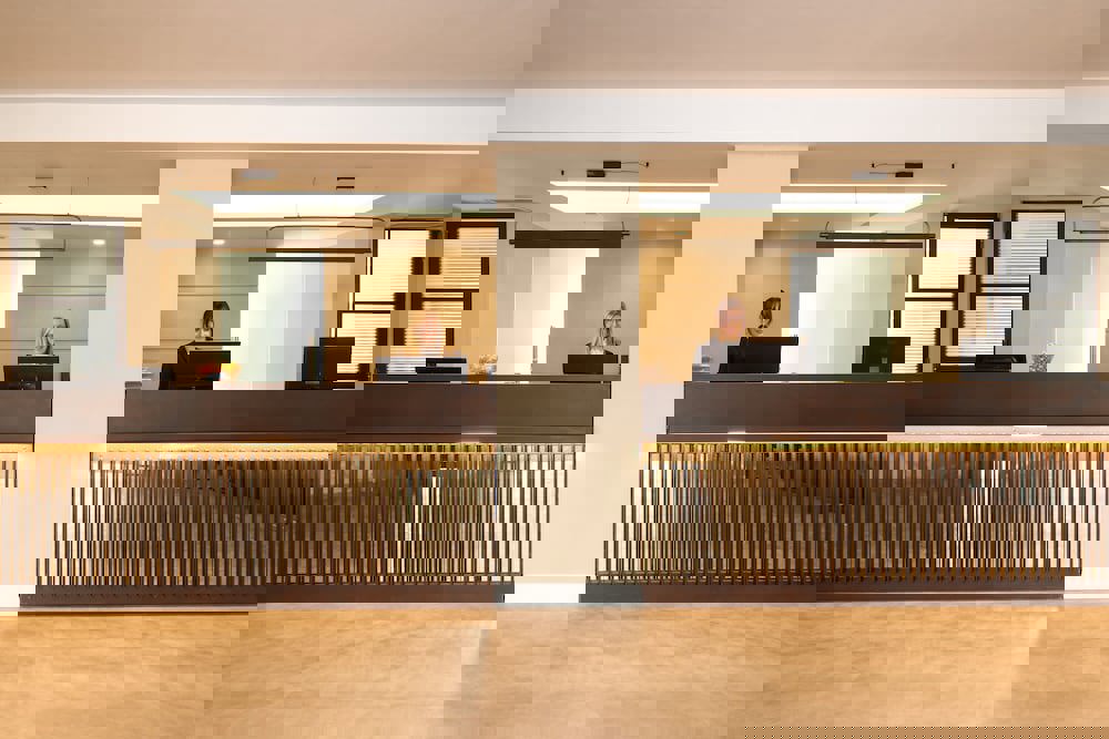 Front desk staff will greet guests on arrival at the property.