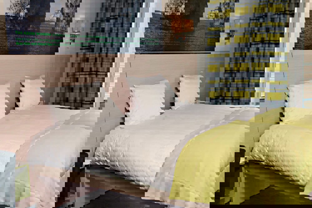 With twin bed, tiled floor, balcony, heating (centrally controlled), kettle (for free), capsule coffee machine (where applicable, for a fee), internet (for free), safe (for free) and flat screen sat TV as well as centrally controlled air conditioning (from January to December). Towels are changed daily.