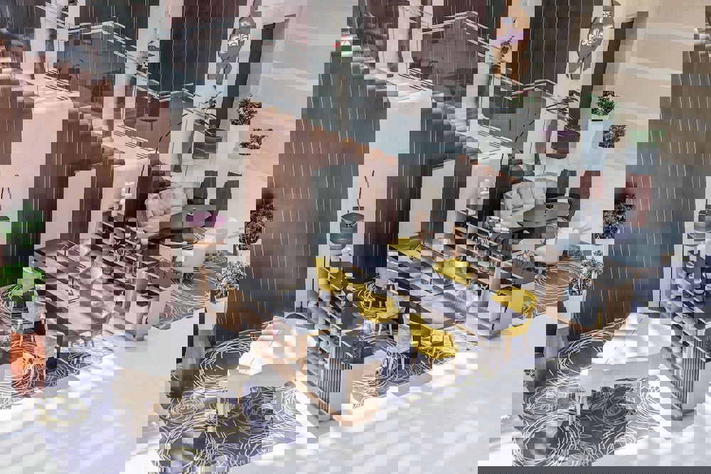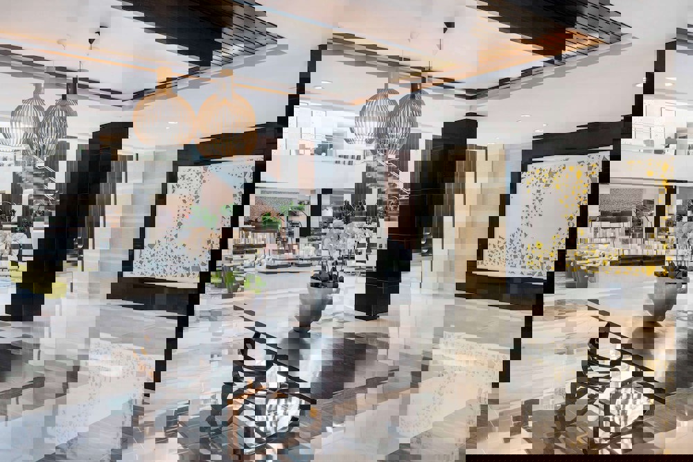 provides a chic setting for socializing and relaxation, featuring expertly