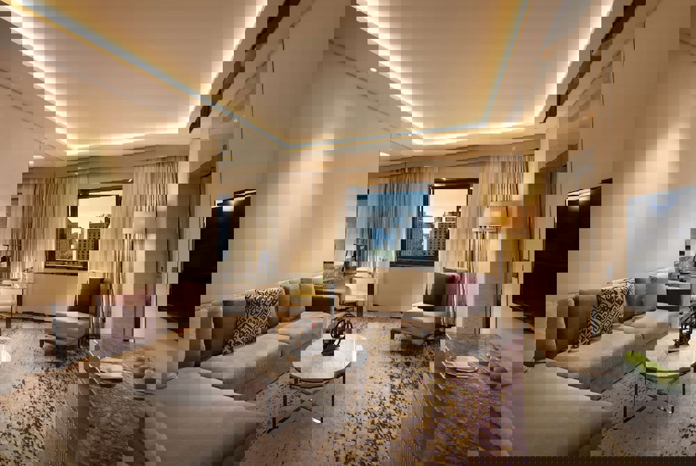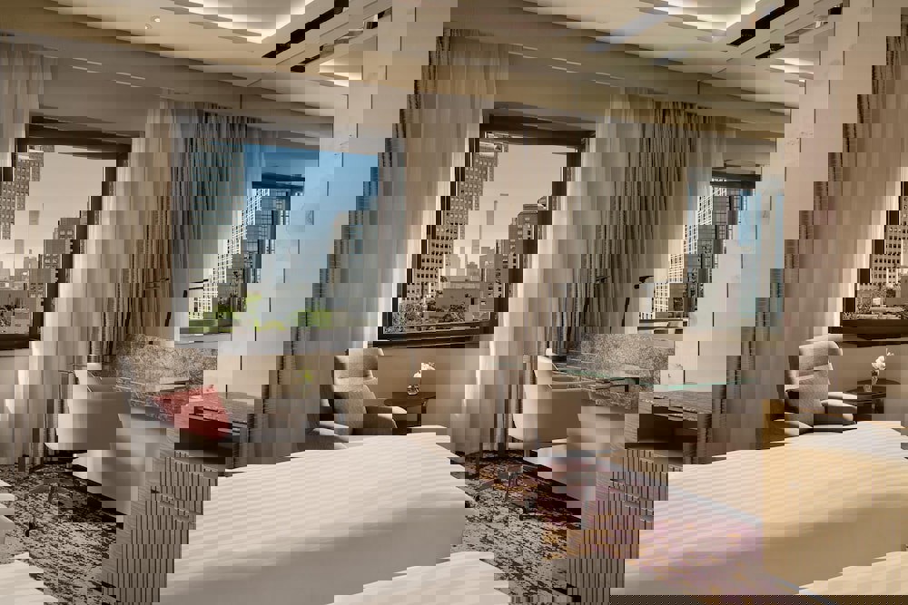 One king bed. One bedroom and adjoining living room. Desk. Complimentary wireless and wired Internet access. 25-inch flat-screen TV with pay movies. Clock radio. Refrigerator and minibar. Hair dryer. Iron/ironing board. In-room safe. Complimentary newspaper. You are invited to use our Executive Lounge with a private and exclusive ambience. Breakfast, tea, and dinner are served, and beverages are on hand throughout the day. Our Executive Lounge team (butlers and receptionists are delighted to assist you with any request). Further benefits include one complimentary laundry pressing and welcome amenities.