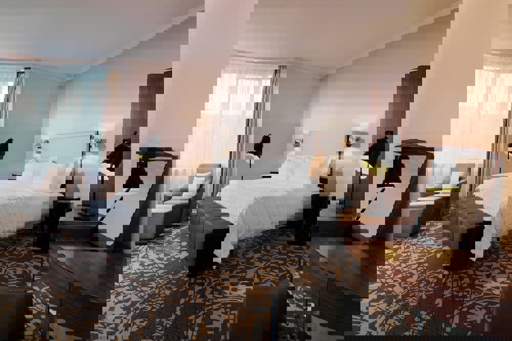 Rooms Make yourself at home in one of the 293 guestrooms featuring minibars and plasma televisions. Your pillowtop bed comes with down comforters and premium bedding. Complimentary wired and wireless internet access keeps you connected, and satellite programming provides entertainment. Private bathrooms with shower/tub combinations feature designer toiletries and hair dryers.