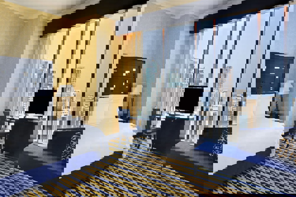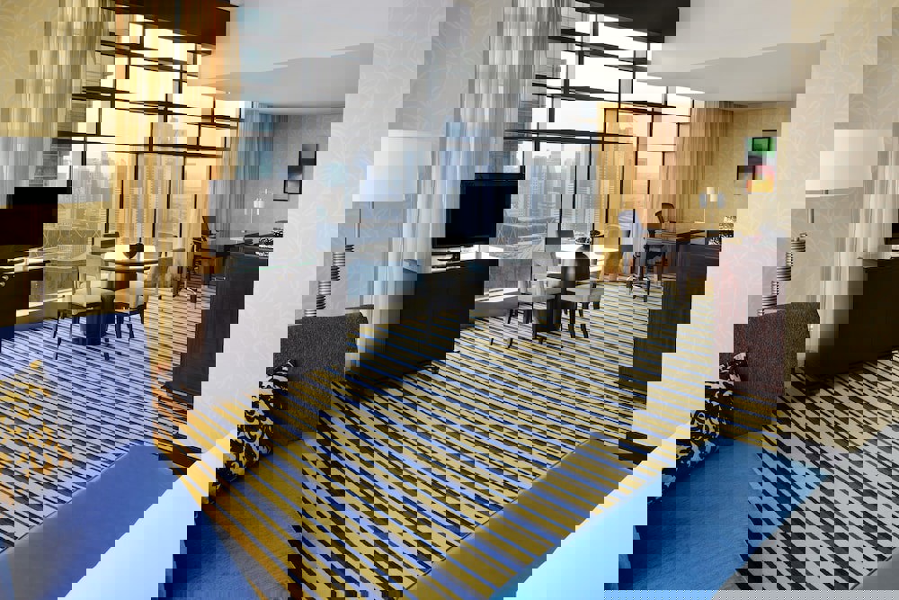 122 apartment-style suites, each offering panoramic views of the Doha skyline