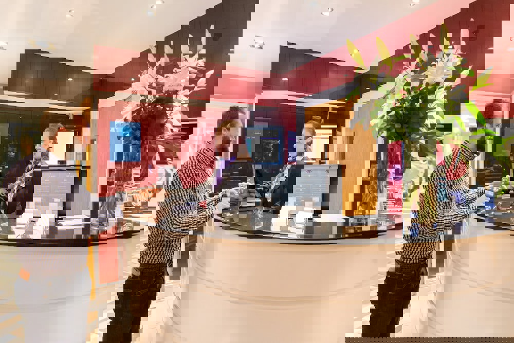 Front desk staff will greet guests on arrival at the property.