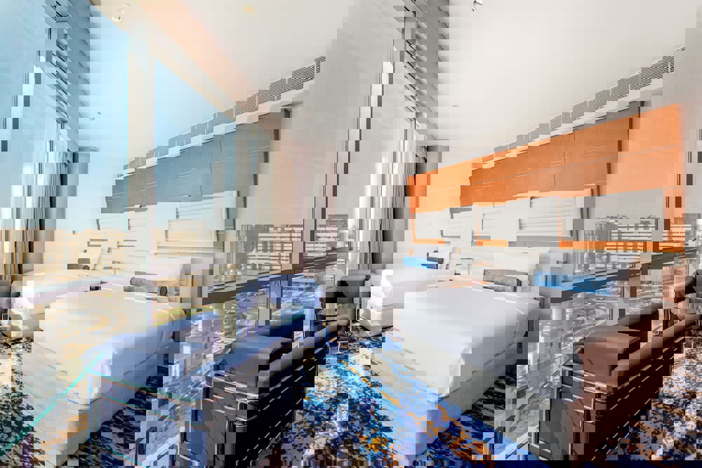 Overlooking the iconic Dubai Skyline featuring the iconic Burj Khalifa and Dubai Frame as well as the historic Dubai Creek. Bask in the summer sun or enjoy the breezy evening wind by the pool.