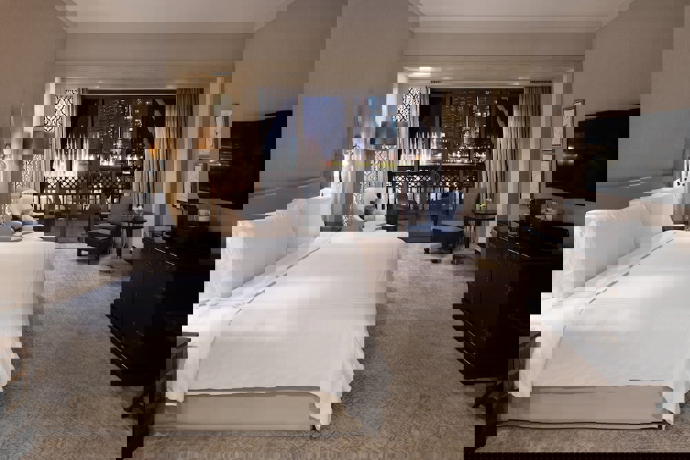 General description: The hotel The Palace Downtown Dubai is situated approx. 10 km from a beach. The tourist centre is about 1 km away. The town DXB Airport is around 15 km away (Dubai City Center around 2 km). You can find a food store and other shopping facilities approx. 1 km away. It is 1 km from the hotel to the nearest bars and restaurants. Also the nearest disco is around 1 km away. Further entertainment facilities such as a cinema and a theatre are approx. 1 km away. For mobility during your holiday, there are a taxi rank as well as a bus stop in a distance of around 1 km and a car rental company. An underground station is located in a distance of approx. 2 km. For medical treatment in emergencies there is a hospital around 3 km away. The airport (AUH) is approx. 115 km away. Another airport (DXB) is located approx. 14 km away. Amenities: Recently renovated in 2008, the 6-storey city hotel has 242 rooms. It is equipped with a 24h reception (check-in from 14:00, check-out until 12:00), a lobby with bar, an air conditioning, a safe (where applicable, for a fee), a mini market, various other shops, discotheque, a parking area (where applicable, for a fee) as well as a money changing facility. For the meals, there are three restaurants (air-conditioned). You can relax in good company in the hotel bar. For guests with physical disabilities the hotel has a barrier-free access, a wheelchair accessible lift and a number of wheelchair accessible bathrooms. For the room service, laundry / ironing service and concierge service the hotel charges a fee (where applicable). Pool: In the outdoor area of the hotel you will find one pool with a children s pool. Here, there are sun umbrellas where applicable, for a fee available. Refreshing beverages can be consumed directly at the pool bar. Sport and Leisure: Sports and entertainment: Fitness. A golf course is located approx. 15 km from the hotel. Spa area, sauna, steam bath and massages available (where applicable for a fee). For the entertainment of young guests there is a children s play area. Child supervision: babysitting (where applicable, for a fee). Additional information: Additional fees may apply for certain facilities, amenities or activities. Some services depend on the local climatic conditions and the season. Languages spoken: English, French, Russian, Spanish and Arabic. Accepted methods of payment: Visa, Diners Club, JCB, Euro / MasterCard and American Express. Some services and facilities might be closed or offered with restrictions due to COVID19 Prevention measurement. Changes can be applied without previous notice. Deluxe Room (LakeView): With kettle (where applicable, for a fee), minibar (for a fee), capsule coffee machine (for free) and safe (for free) as well as centrally controlled air conditioning. Palace Room (LakeView): With kettle (where applicable, for a fee), minibar (for a fee), capsule coffee machine (for free) and safe (for free) as well as centrally controlled air conditioning. Meal Plan: HALF BOARD SUPPLEMENTS – INTERNATIONAL BUFFET LUNCH OR DINNER IN EWAAN RESTAURANTGeneral description: The hotel The Palace Downtown Dubai is situated approx. 10 km from a beach. The tourist centre is about 1 km away. The town DXB Airport is around 15 km away (Dubai City Center around 2 km). You can find a food store and other shopping facilities approx. 1 km away. It is 1 km from the hotel to the nearest bars and restaurants. Also the nearest disco is around 1 km away. Further entertainment facilities such as a cinema and a theatre are approx. 1 km away. For mobility during your holiday, there are a taxi rank as well as a bus stop in a distance of around 1 km and a car rental company. An underground station is located in a distance of approx. 2 km. For medical treatment in emergencies there is a hospital around 3 km away. The airport (AUH) is approx. 115 km away. Another airport (DXB) is located approx. 14 km away. Amenities: Recently renovated in 2008, the 6-storey city hotel has 242 rooms. It is equipped with a 24h reception (check-in from 14:00, check-out until 12:00), a lobby with bar, an air conditioning, a safe (where applicable, for a fee), a mini market, various other shops, discotheque, a parking area (where applicable, for a fee) as well as a money changing facility. For the meals, there are three restaurants (air-conditioned). You can relax in good company in the hotel bar. For guests with physical disabilities the hotel has a barrier-free access, a wheelchair accessible lift and a number of wheelchair accessible bathrooms. For the room service, laundry / ironing service and concierge service the hotel charges a fee (where applicable). Pool: In the outdoor area of the hotel you will find one pool with a children s pool. Here, there are sun umbrellas where applicable, for a fee available. Refreshing beverages can be consumed directly at the pool bar. Sport and Leisure: Sports and entertainment: Fitness. A golf course is located approx. 15 km from the hotel. Spa area, sauna, steam bath and massages available (where applicable for a fee). For the entertainment of young guests there is a children s play area. Child supervision: babysitting (where applicable, for a fee). Additional information: Additional fees may apply for certain facilities, amenities or activities. Some services depend on the local climatic conditions and the season. Languages spoken: English, French, Russian, Spanish and Arabic. Accepted methods of payment: Visa, Diners Club, JCB, Euro / MasterCard and American Express. Some services and facilities might be closed or offered with restrictions due to COVID19 Prevention measurement. Changes can be applied without previous notice. Deluxe Room (LakeView): With kettle (where applicable, for a fee), minibar (for a fee), capsule coffee machine (for free) and safe (for free) as well as centrally controlled air conditioning. Palace Room (LakeView): With kettle (where applicable, for a fee), minibar (for a fee)