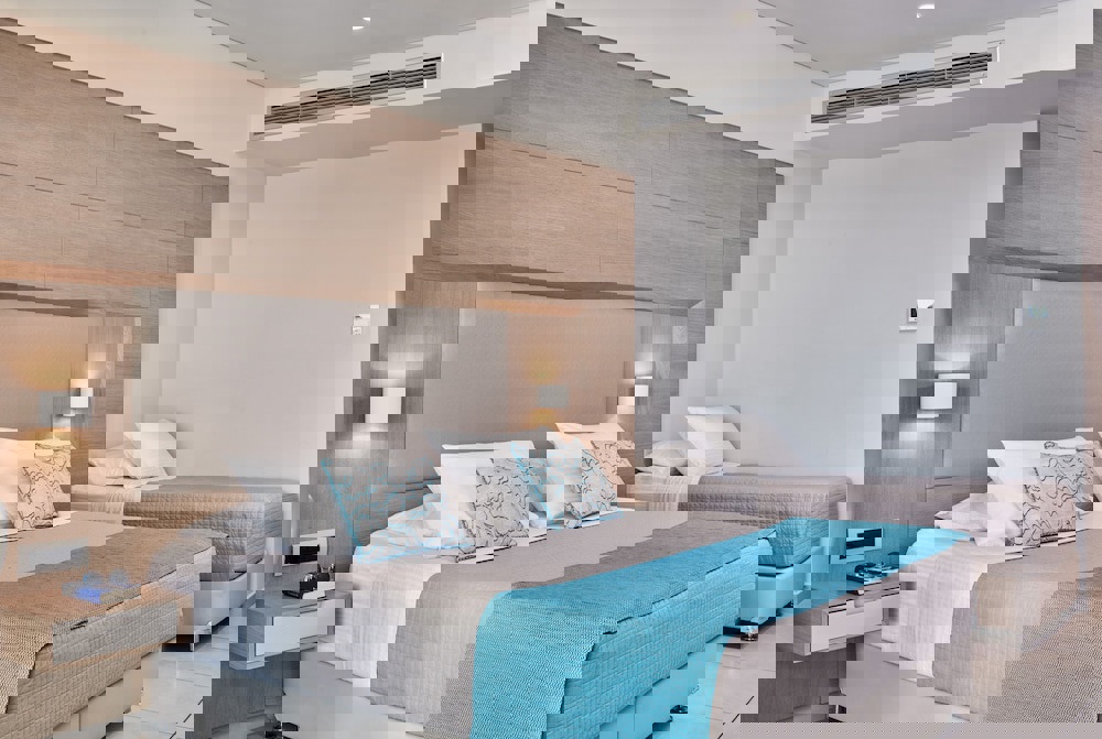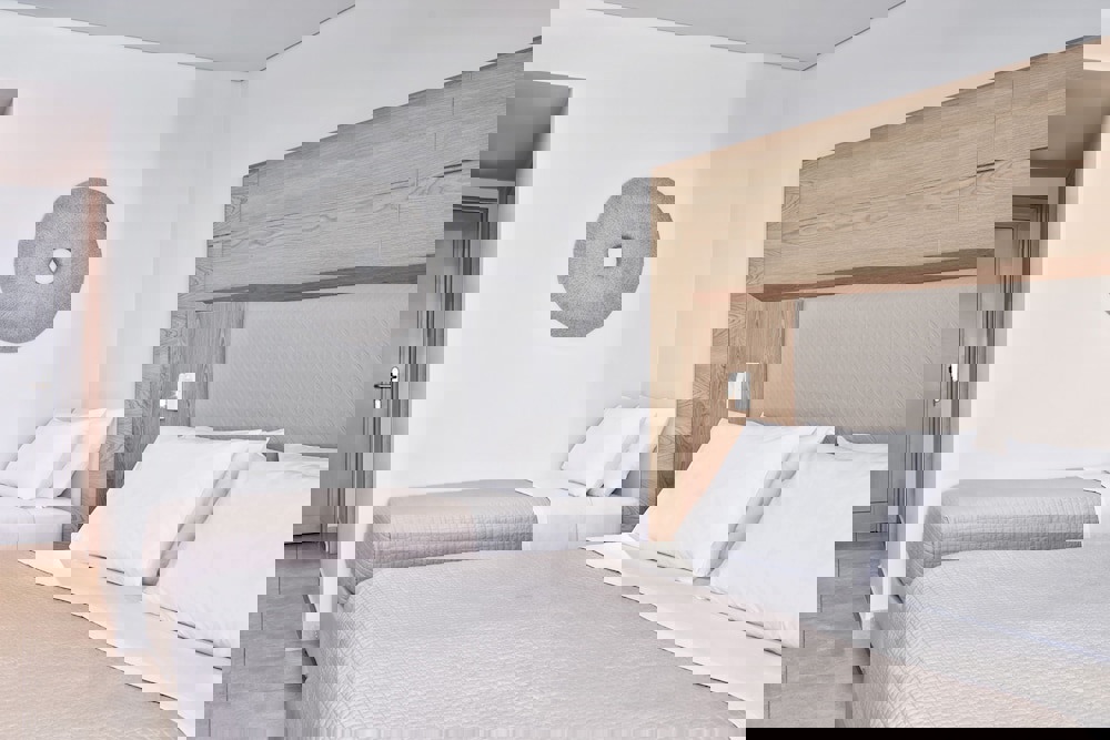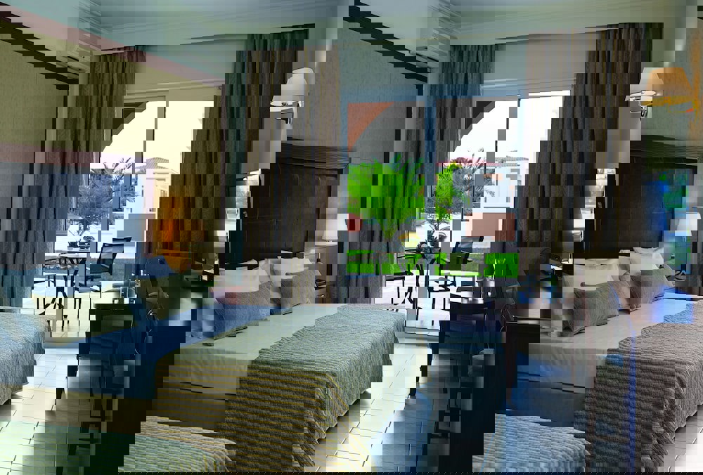 With double bed, 2 extra beds, baby cot (for free), tiled floor, balcony or terrace, kettle (for free), internet (for free), safe (for free), flat screen sat TV with local broadcasters and individually adjustable air conditioning. Bathroom with bathtub or shower.
