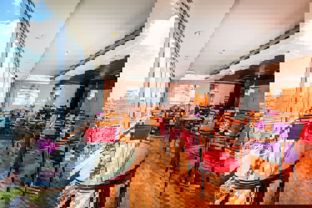 venue with panoramic city views, specialising in French cuisine. Menu