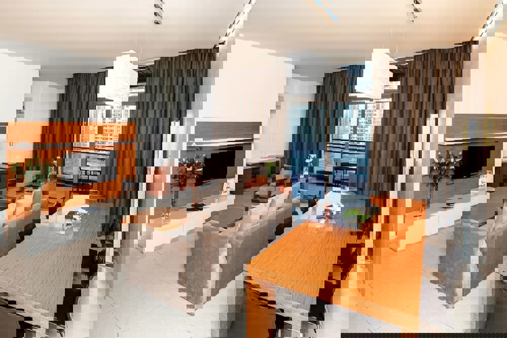 A tourism fee is imposed by the city and collected at the property. The fee is AED 10 for the first bedroom per night, and increases by AED 10 per night for each additional bedroom.