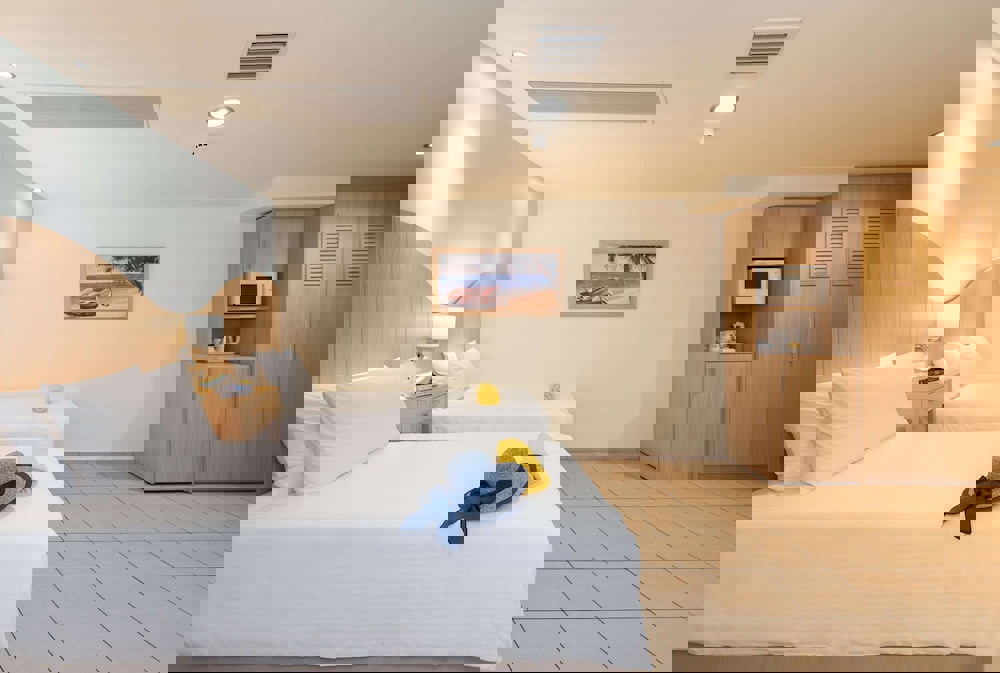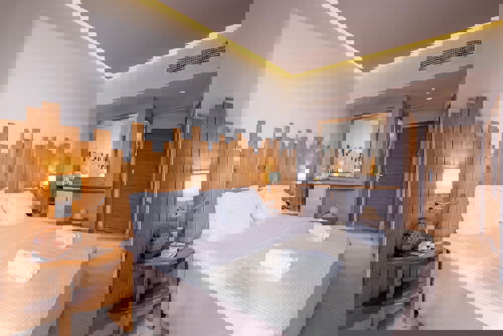 It consists of 395 beautifully decorated dbl rooms, family rooms, superior family rooms, suites, and dbl rooms Annex, with garden and sea view, split unit heating and air-conditioning, bath or shower, hairdryer, direct isdn telephone line, safe box (free), sat. T.V, music channels, direct Wi-Fi Internet access, fridge (with mineral water), microwave, water-boiler with coffee & tea amenities and balcony or terrace.