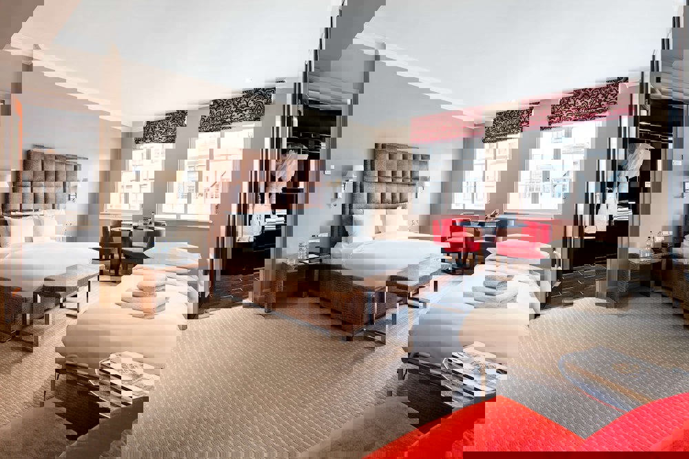 The May Fair Hotel's bedrooms features elegant, contemporary decor, Italian marble bathrooms and luxury Vispring beds with down pillows and 350 thread count Egyptian cotton bedding. All are equipped with free high-speed WiFi up to 150mbps on unlimited devices and Samsung TVs offering up to 300 channels in multiple languages. In selected suites, iPads let guests browse the hotel's services and menus before ordering with the touch of a screen.