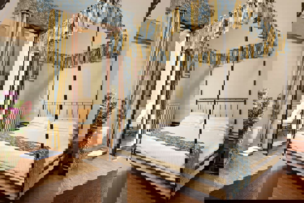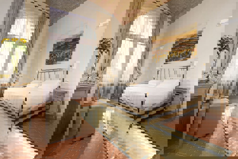 Setting the navigation system to reach a desired destination... Tuscany, Siena, Colle di Val d'Elsa, Mensanello location... would be like opening a Matrioska, starting from the famous Tuscany, going through the charming Siena of the Palio, passing to the micro area of Colle di Val D'Elsa, the city of Cristallo, and finally ending up in the small farming village named Mensanello... and this is where Villa Sabolini is located.Setting the navigation system to reach a desired destination... Tuscany, Siena, Colle di Val d'Elsa, Mensanello location... would be like opening a Matrioska, starting from the famous Tuscany, going through the charming Siena of the Palio, passing to the microarea of Colle di Val d'Elsa, the city of Cristallo, and finally ending up in the small farming village named Mensanello... and this is where Villa Sabolini is located. Some know it as the home of the Bishop of Mensanello, others know it as the old Archbishop's Seminary, and some pass in front of its walls every day not knowing what lies beyond them. The charming, concealed house leaves you astonished as soon as you see it... As soon as you enter the gate of Villa Sabolini, you are confronted with the beauty of an ancient historic residence from the 15th century, surrounded by an Italian garden with secular trees where just walking makes you breathe in the air and charm of the past. The Villa owes its name to an important family of the Colle Val d'Elsa area, "The Sabolini", the last heir of which, Archpriest Amerigo Sabolini, decided to use the Villa as a retreat residence during his last years. Later, it was the dwelling of the Venturi-Gallerani Family, whose family coat of arms it still bears, and they were the masters until after the Second World War. And it was precisely during that period that the Villa acquired strategic importance for the Italian artistic heritage! Tales say that during the Second World War, some clergymen tried to save works of art from the Nazi plundering by hiding them in the secluded Convents, Villas, Monasteries in the Italian countryside. In 1943, art scholar Frank Stokes convinced the President of the United States of America to gather a group of architects and art experts, enlisting them in the army, with the aim of finding, around the invaded European countries, all the works of art stolen by Adolf Hitler. This group of soldier-art experts was named "The Monuments Men". In the summer of 1944, Frank Stokes was touring the Tuscan countryside, searching for one of the most famous pieces for our cultural heritage and... it was when he arrived in the small village of Mensanello, in the Villa once called the Bishop's Villa that, meticulously stowed away inside a wooden crate, he found the beautiful piece of “Maestà di Duccio Boninsegna”, transported from the Museum of the Opera of Siena to Villa Sabolini to hide and protect it from enemy plundering. After the Second World War, Mrs. Flavia, the last of the Venturi-Gallerani dynasty left, at her death not having any children, everything to the Diocese of Siena which made it into a Seminary. The Villa has been converted into a hotel for the past 10 years to allow our guests to admire and enjoy the charm of "Living in the Past!" Villa Sabolini has 40 rooms all finely decorated with elegant and sober style, canopy beds, terrazzo or cotto floors and bathrooms with precious marble act as a frame for a relaxing holiday in the Tuscan countryside. Completing everything is our "Sabolini" Restaurant, with its welcoming terrace, a place for Tuscan culinary tradition, where each day our Chef rediscover and reinterpret the territory's products to offer our guests the taste and flavour of time. Dishes that are born from tradition, using genuine seasonal ingredients in a simple yet refined way, making each tasting a small fragment of the unique stay memory. With its elegant style, the dining room becomes the ideal place for a candlelight dinner, for intimate receptions and unforgettable occasions. We look forward to making you enjoy an unforgettable stay... "JUST LIKE HOME"!!!SAN GIMIGNANO - Distance from the hotel: 20 km. A splendid example of a medieval town still intact in its original configuration, San Gimignano (Siena) overlooks from the top of a hill a romantic countryside where green meadows alternate with olive trees and vines. The towers that proudly tower within the village outline that magical profile that has made San Gimignano famous in the world, so much so that it has been renamed the Manhattan of the Middle Ages. The current 15 medieval towers (reminder of the 72 that the town had at the moment of maximum splendour) announce from afar to the visitor the splendour of the Tuscan town, which developed between the IX and XIII century - in an area already inhabited in Etruscan times, as a stop along the Via Francigena, important communication road between Northern Europe and Rome. Around 1150, the Francigena traced moved to the valley floor, favoring the development of Poggibonsi and Colle di Val d'Elsa, and marking the beginning of the decline of San Gimignano. At the same time, this allowed the perfect preservation of the urban planning and architecture typical of the medieval Tuscan hill towns, which today has made the town so famous as to be declared by UNESCO a heritage of humanity. Passing one of the doors of the town wall, you cross a temporal boundary, which gives us direct access to the Middle Ages: at this point you just need to lose yourself in the crossroads of the streets to savour this rare opportunity. SIENA - Distance from the hotel: 15 km. Siena retains intact the charm of the medieval period, which was the period of greatest fortune and expansion of the city. Already inhabited by Etruscans and later Roman colony, Siena owes its growth to the Via Francigena that since the early Middle Ages crossed it, offering lodging to pilgrims and travelers. Between the 13th and 14th centuries, some of the most important buildings tha