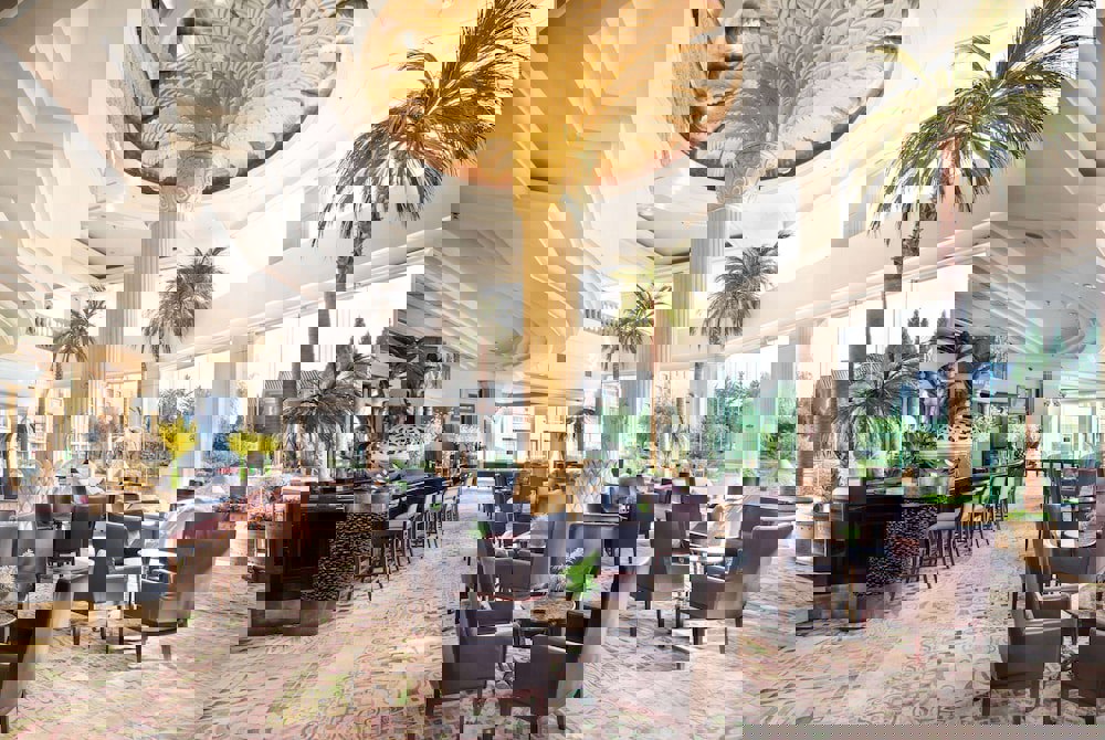 Dining Enjoy international cuisine at Palm Terrace, one of the hotel's 2 restaurants, or stay in and take advantage of the 24-hour room service. Snacks are also available at the coffee shop/cafe. Buffet breakfasts are available daily from 7:30 AM to 10:00 AM for a fee.